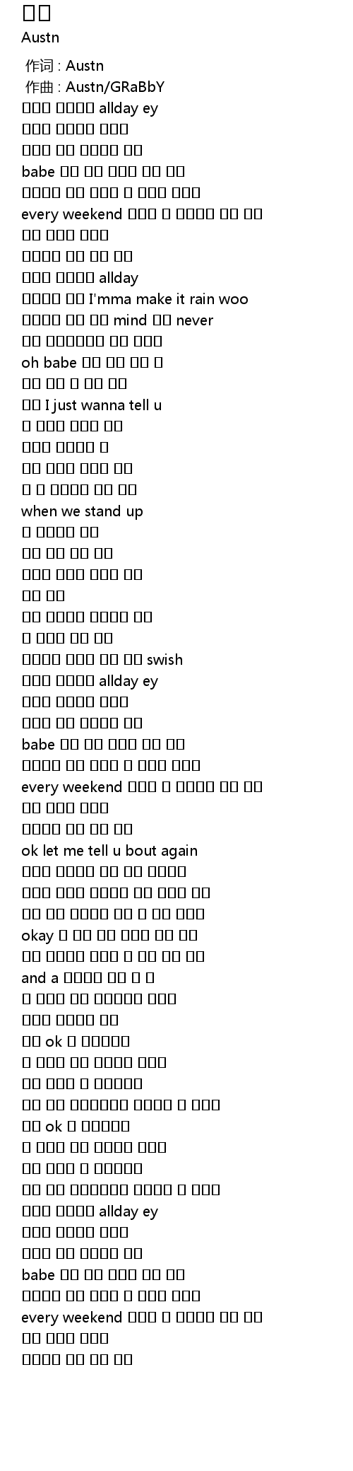 | [00:00.000] | 作词 : Austn |