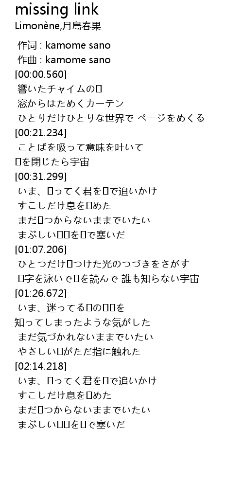 | [01:16.651] | ⽂字を泳いで⾊を読んで 誰も知らない宇宙 |