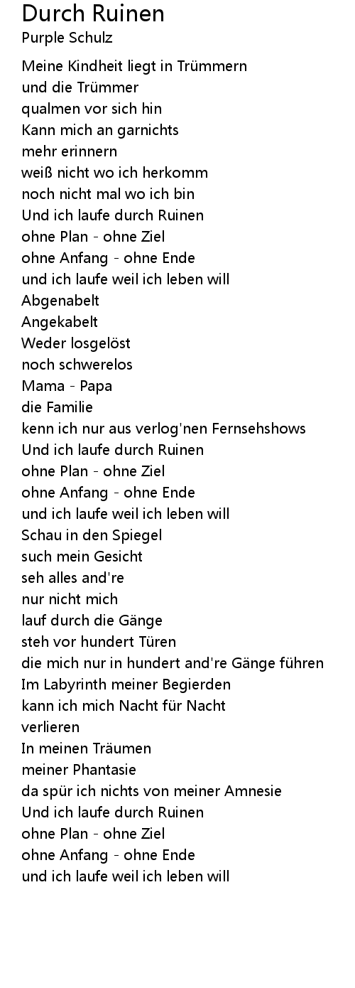 | Und ich laufe durch Ruinen | |