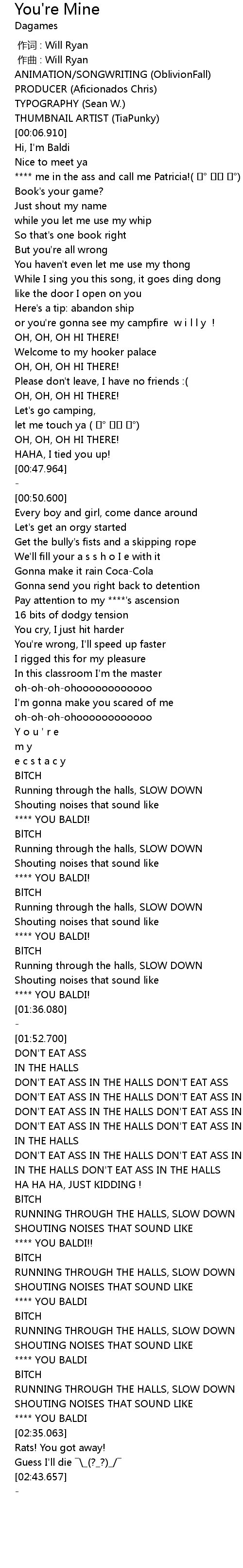 | [02:12.940] | DON'T EAT ASS IN THE HALLS DON'T EAT ASS IN THE HALLS DON'T EAT ASS |