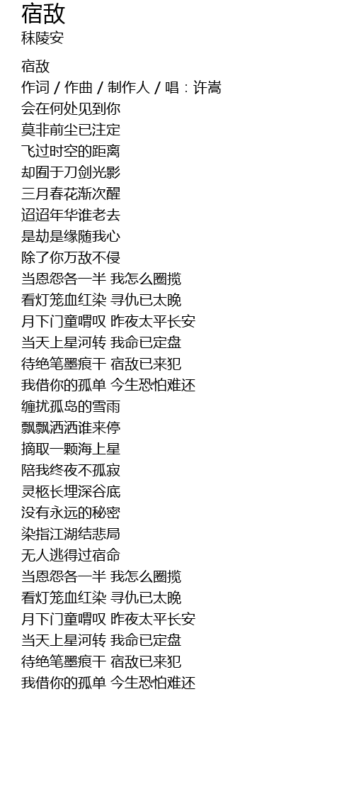 | [00:22.685] | 作词 / 作曲 / 制作人 / 唱:许嵩 |