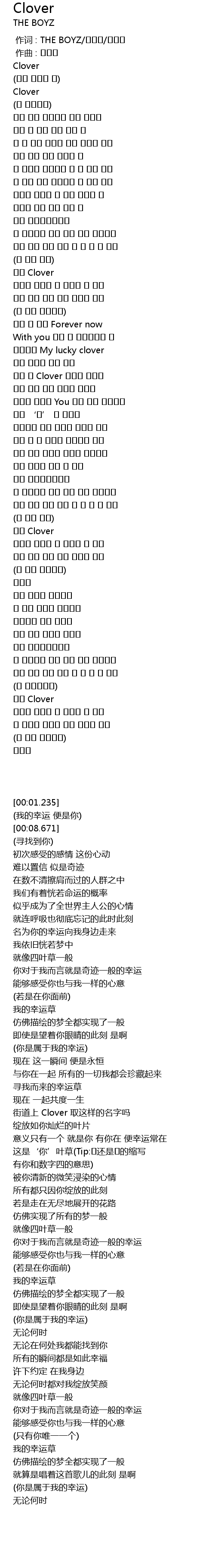 | [01:42.564] | 마치 네잎클로버처럼 |