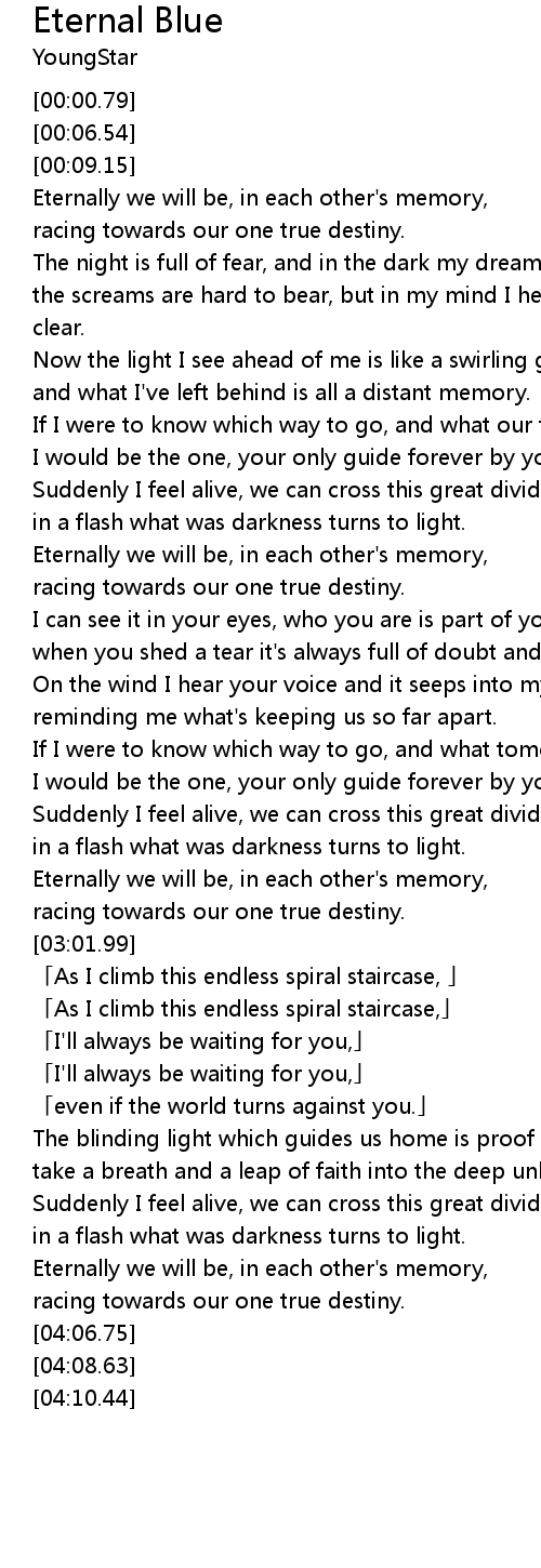 | [03:52.99] | Eternally we will be, in each other's memory, |