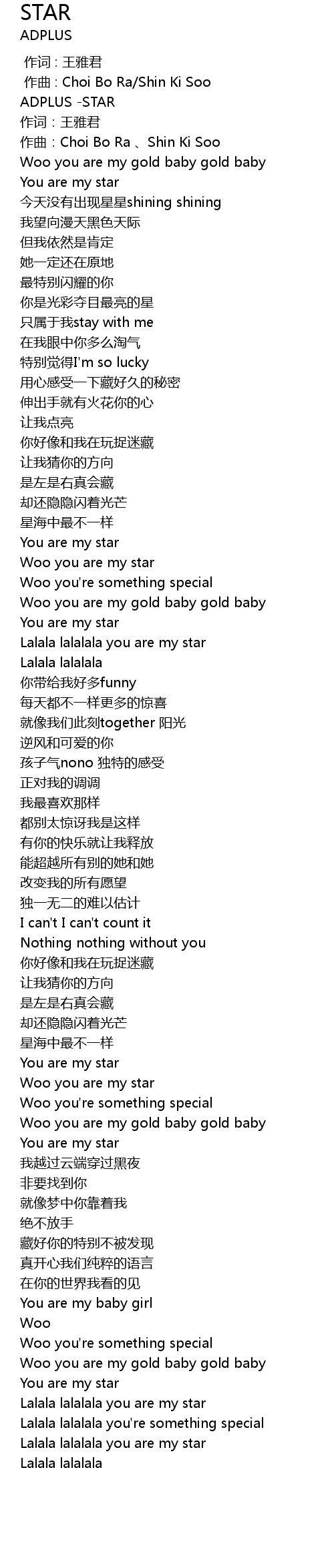 STAR 歌词