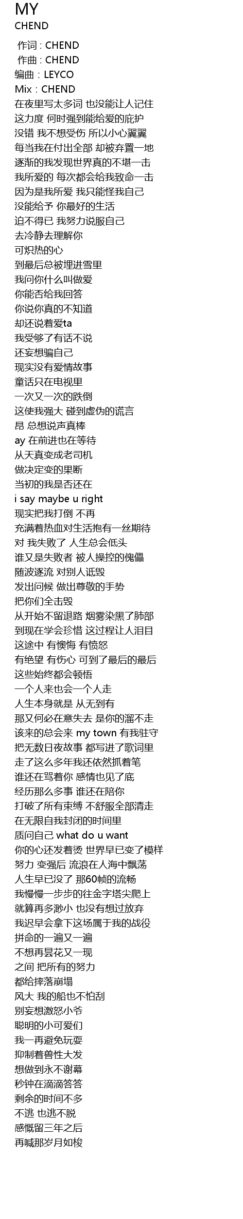 | [00:00.000] | 作词 : CHEND |