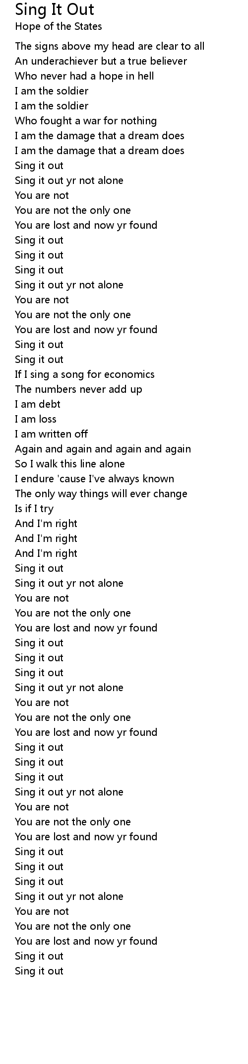 | Sing it out yr not alone | |