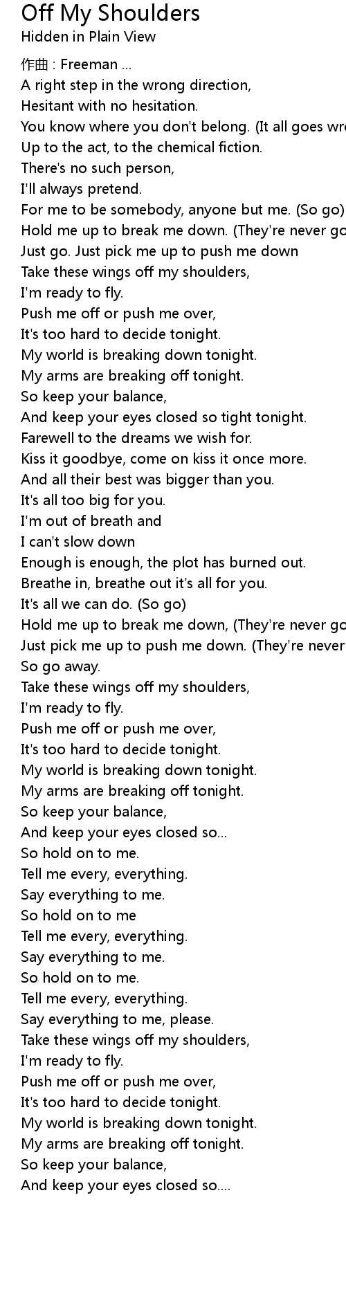 | You know where you don' t belong. It all goes wrong, so wrong. | |