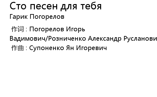 | [00:00.000] | 作词 : Погорелов Игорь Вадимович/Розниченко Александр Русланович |