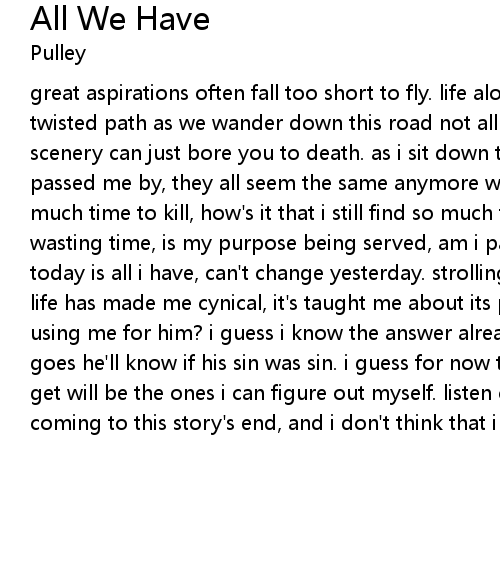 great aspirations often fall too short to fly. life alone can take us on its twisted path as we wander down this road not all sure where to go. sometimes the scenery can just bore you to death. as i sit down to write, another day has passed me by, they all seem the same anymore with so little time to live, and so much time to kill, how's it that i still find so much time to be bored? am i wasting time, is my purpose being served, am i part of a bigger master plan? today is all i have, can't change yesterday. strolling down this road again, life has made me cynical, it's taught me about its pain. is the little blue man using me for him? i guess i know the answer already, so does he, but when he goes he'll know if his sin was sin. i guess for now the only answers that i'll get will be the ones i can figure out myself. listen closely friends we're coming to this story's end, and i don't think that i have rid from any doubt. |