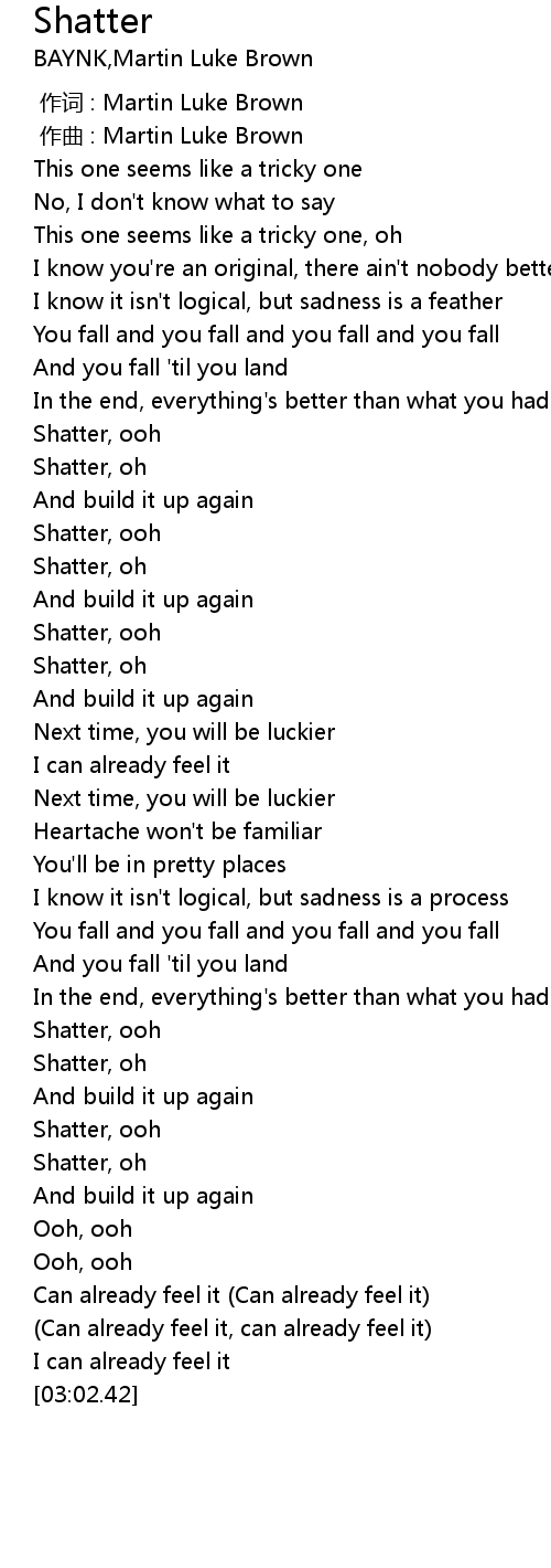 | [02:20.91] | Shatter, ooh |