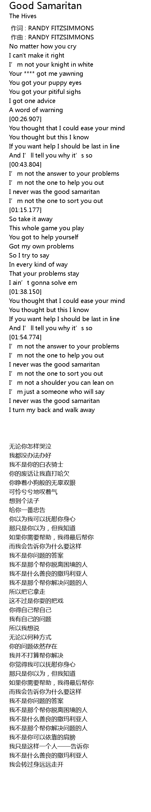 | [02:14.391] | 我不是什么善良的撒玛利亚人 |