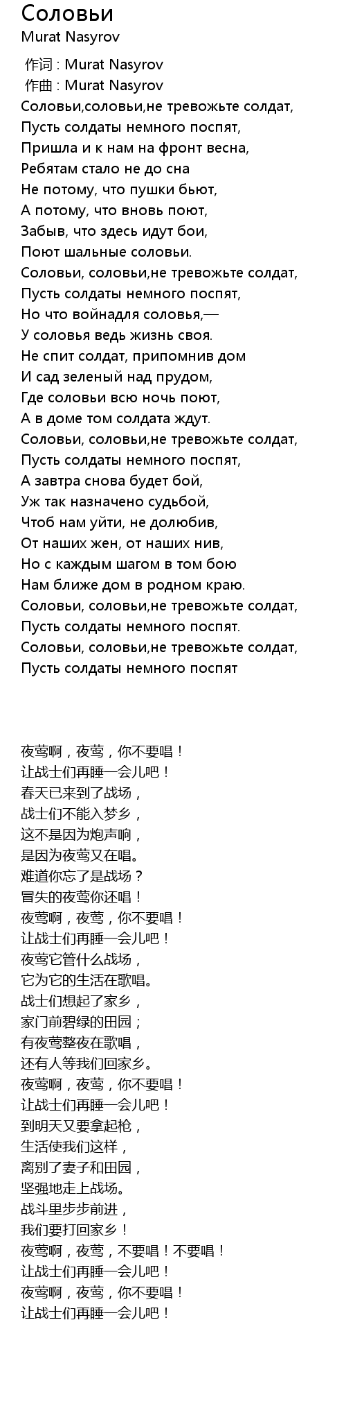 | [02:50.699] | Соловьи, соловьи,не тревожьте солдат, |
