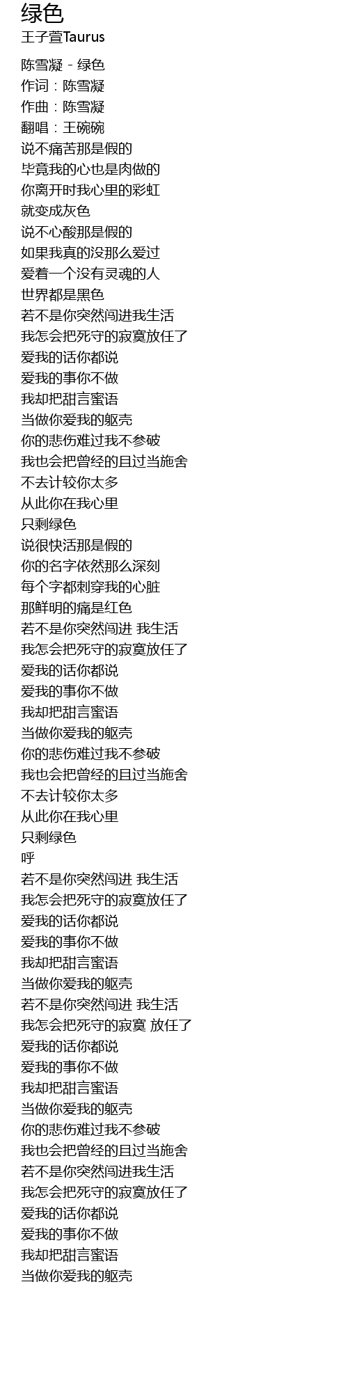 | [00:00.931] | 陈雪凝 - 绿色 |