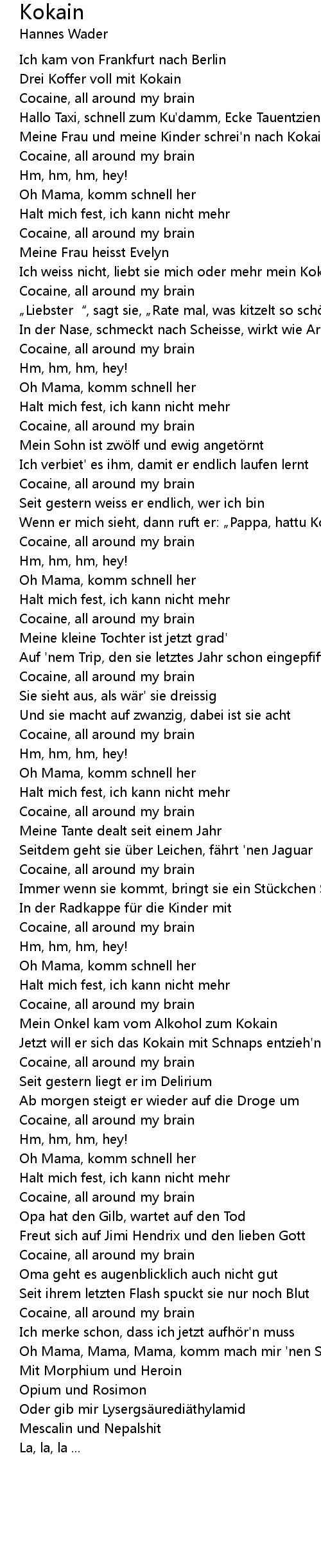| Meine Frau und meine Kinder schrei' n nach Kokain | |