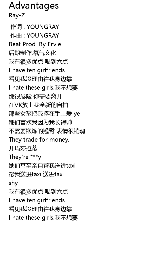 | [00:19.983] | I hate these girls. wo bu xiang yao |