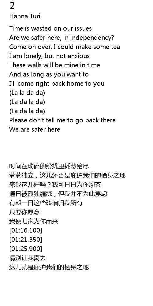 | [02:06.600] | We are safer here |