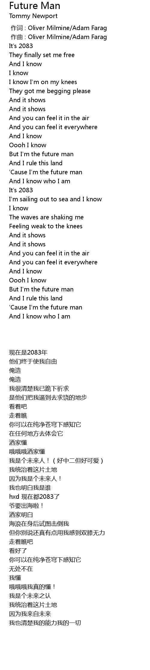 | [00:47.224] | 因为我是个未来人! |