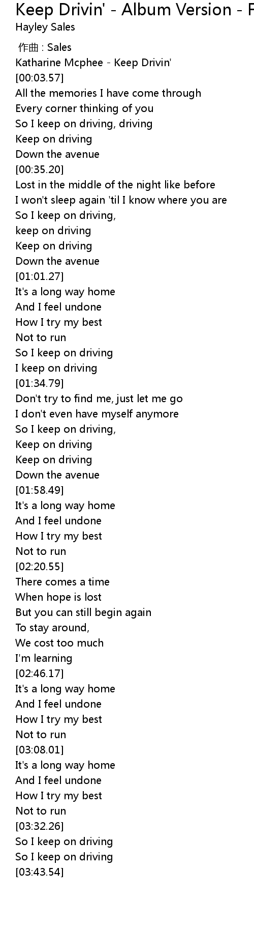 | 歌曲 | Keep Drivin' - Album Version - Final Mix |