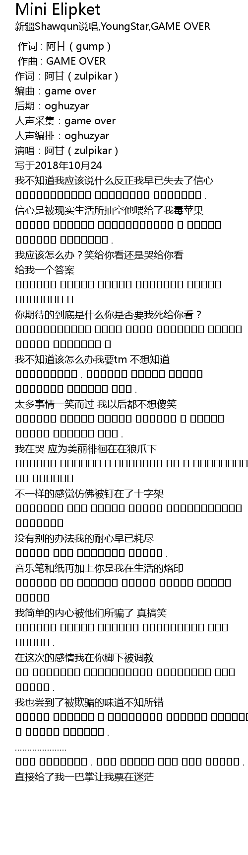 | [00:06.235] | 演唱:阿甘(zulpikar) |