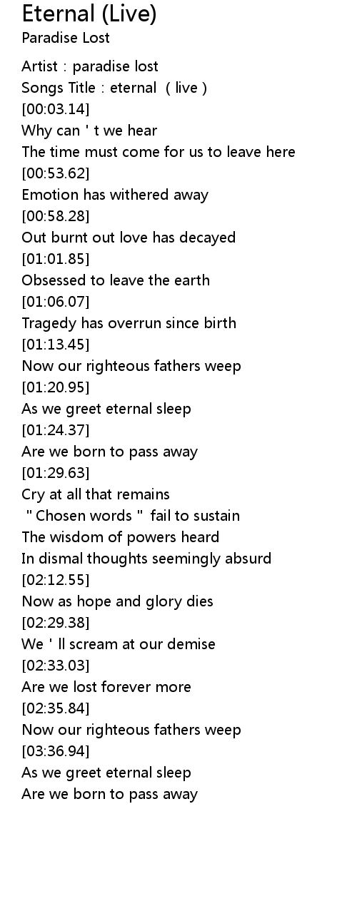 | [00:01.49] | Songs Title:eternal (live) |
