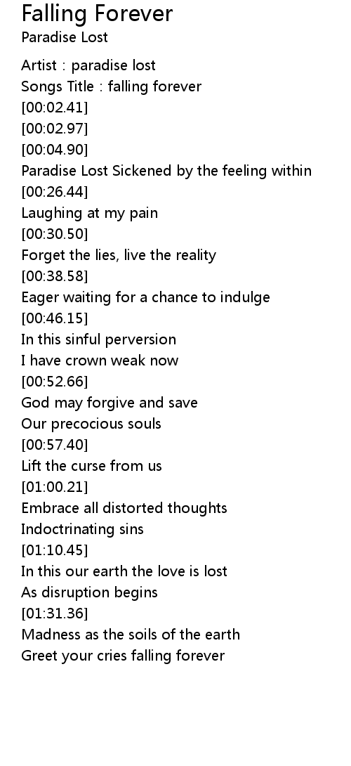 | [00:21.76] | Paradise Lost Sickened by the feeling within |
