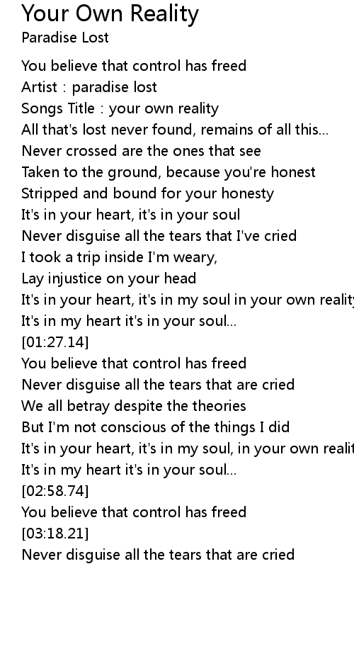 | [02:46.74] | It's in your heart, it's in my soul, in your own reality |
