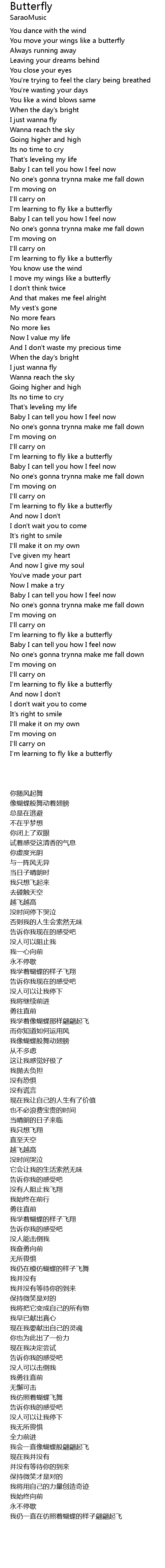 I move my wings like a butterfly |