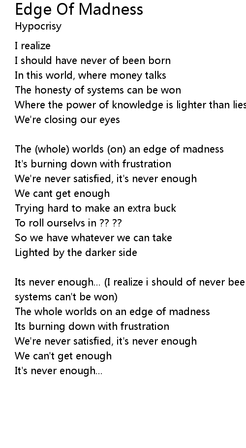 | The whole worlds on an edge of madness | |