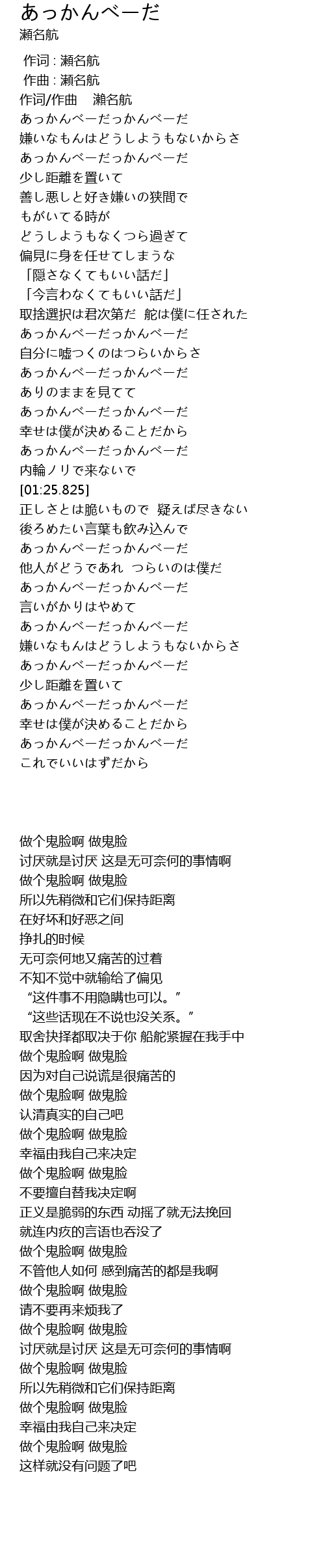 | [01:50.276] | あっかんべーだっかんべーだ |