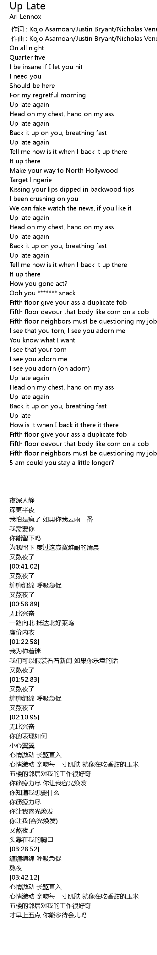 | 歌曲 | Up Late |