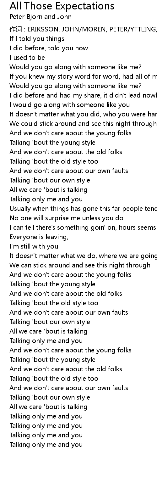 | 作词 : ERIKSSON, JOHN/MOREN, PETER/YTTLING, BJORN | |
