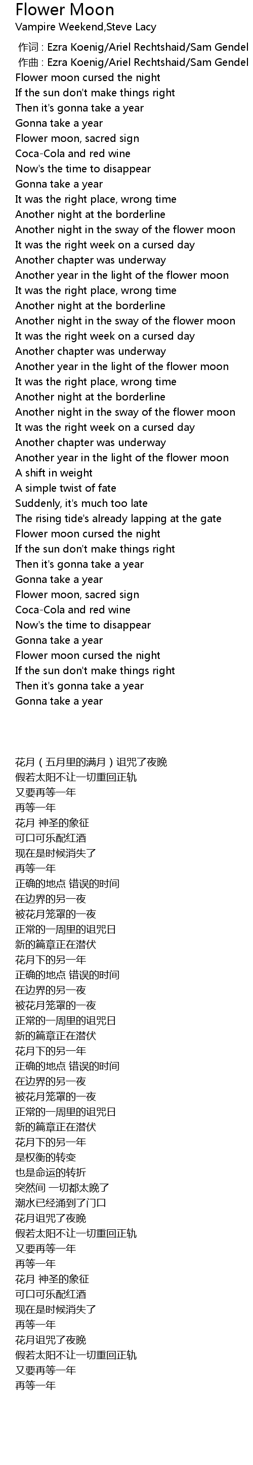 | [00:00.000] | 作词 : Ezra Koenig/Ariel Rechtshaid/Sam Gendel |