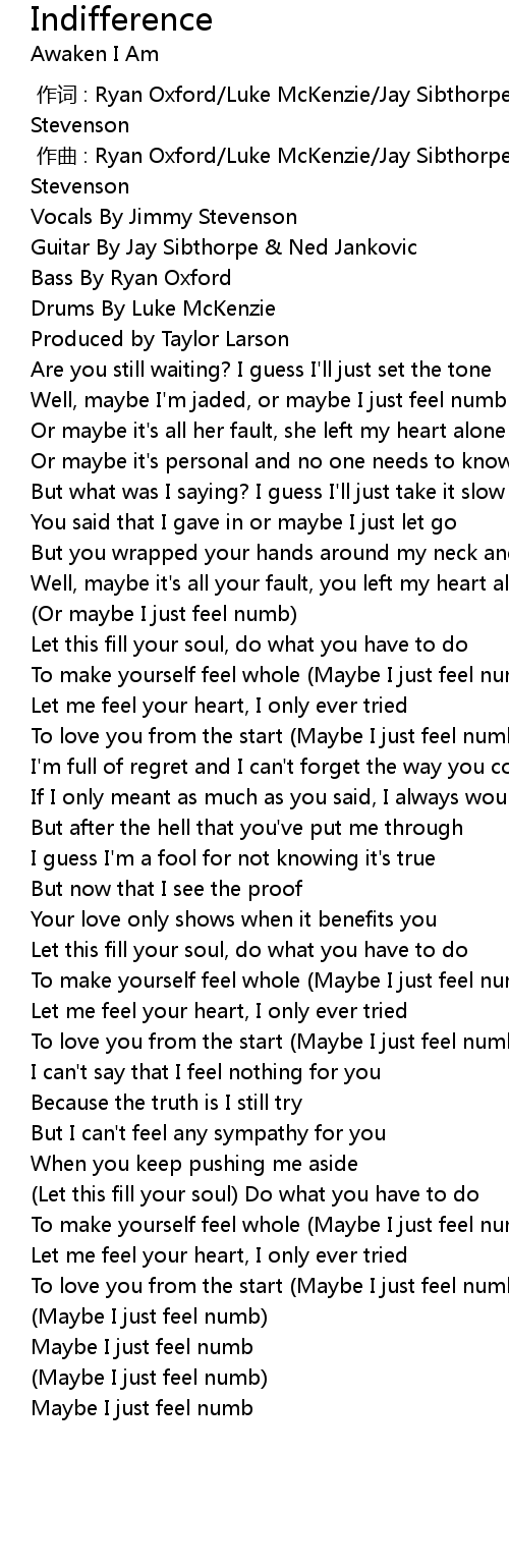 | [00:13.32] | Well, maybe I'm jaded, or maybe I just feel numb |