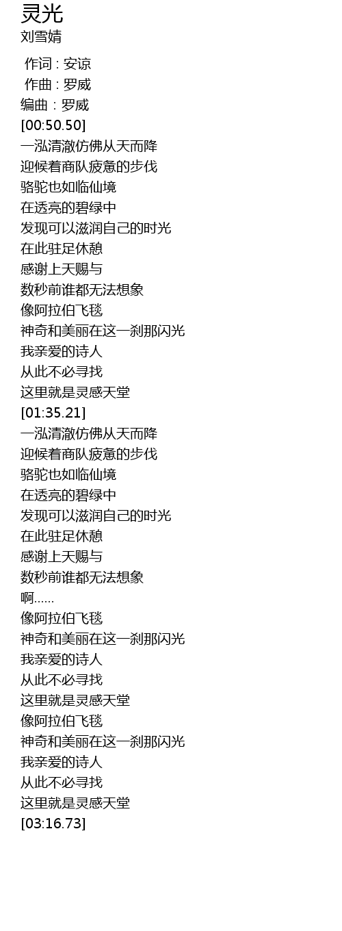 | [00:57.18] | 迎候着商队疲惫的步伐 |