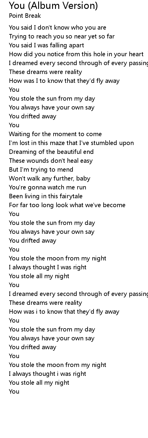You stole the sun from my day |