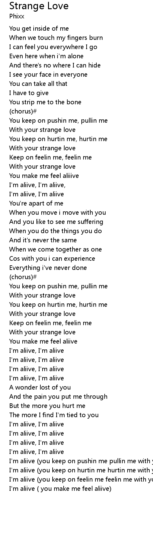 I'm aliive (you keep on hurtin me hurtin me with your strange love)