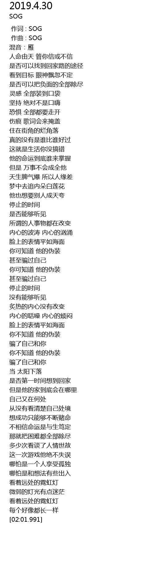 | [00:01.000] | 作曲 : SOG |