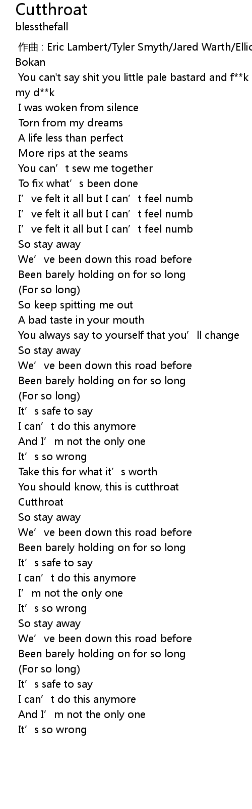| [00:43.379] | I' ve felt it all but I can' t feel numb |