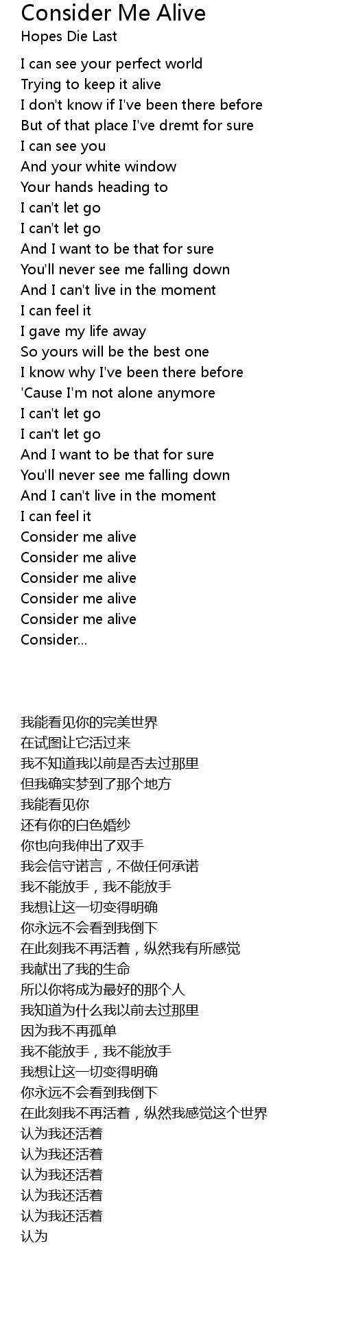 Consider me alive |