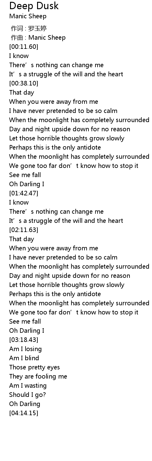 | [00:01.000] | zuò qǔ : Manic Sheep |