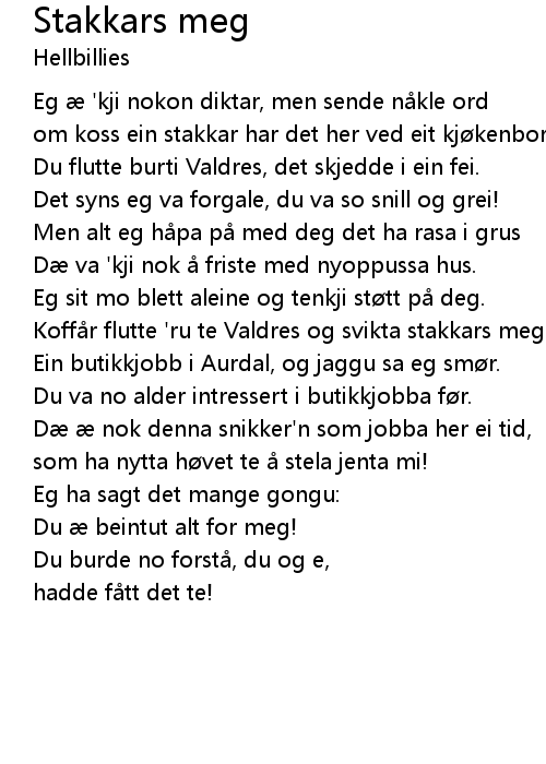 | 歌曲 | Stakkars meg |