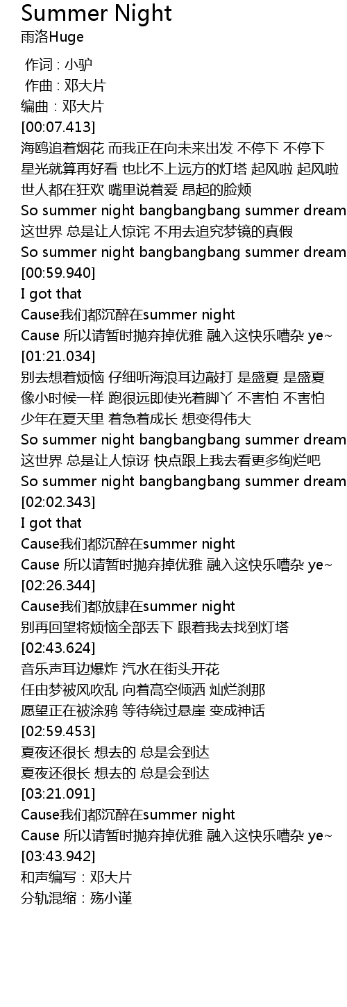| [03:30.880] | Cause wo men dou chen zui zai summer night |