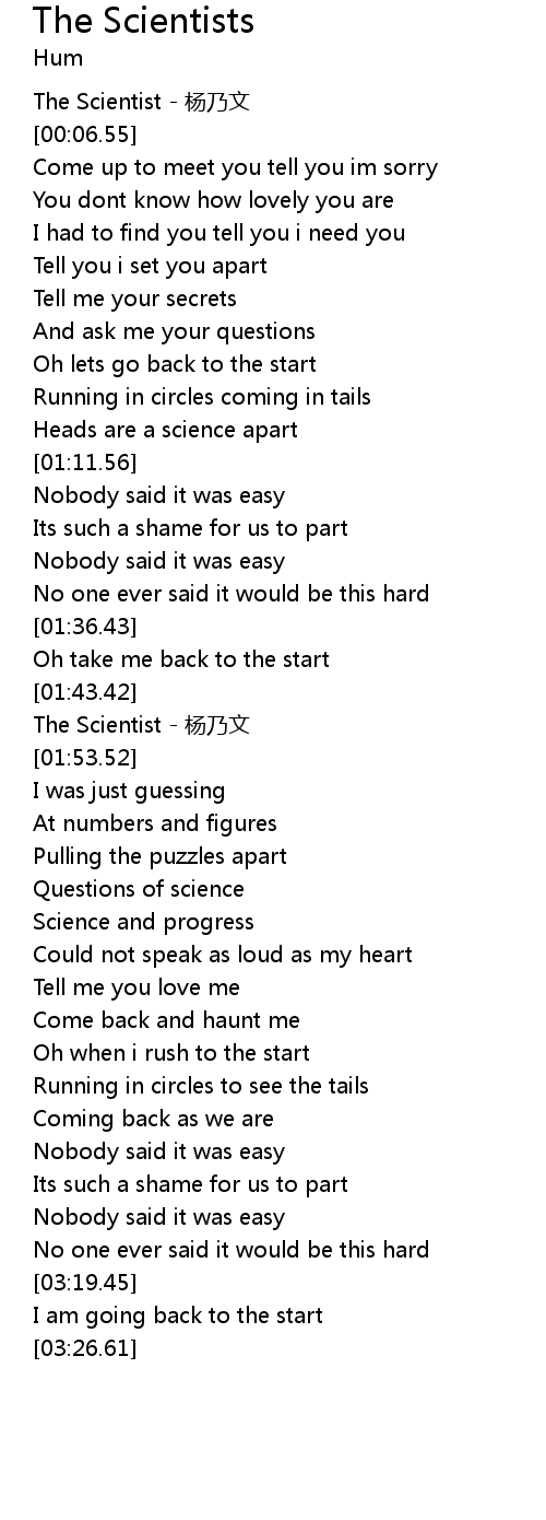 | [00:01.42] | The Scientist yáng nǎi wén |