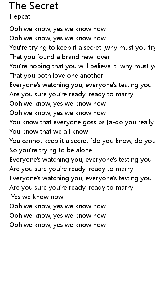 You cannot keep it a secret [do you know, do you know it] |