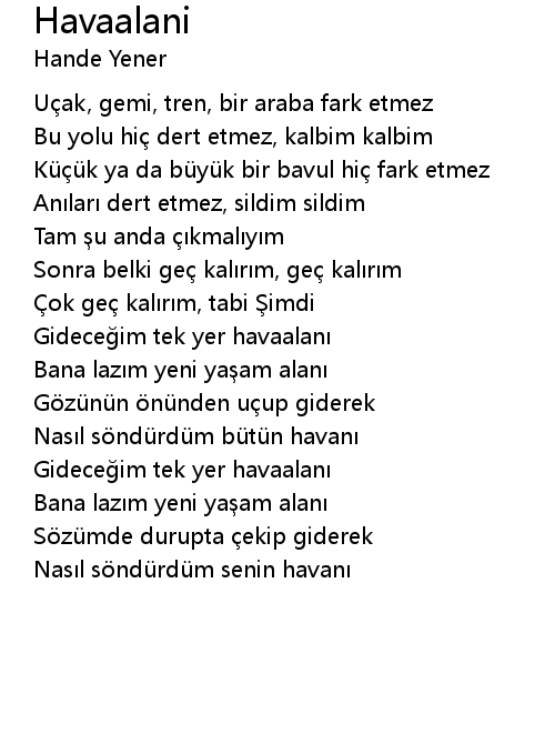 | 歌曲 | Havaalani |