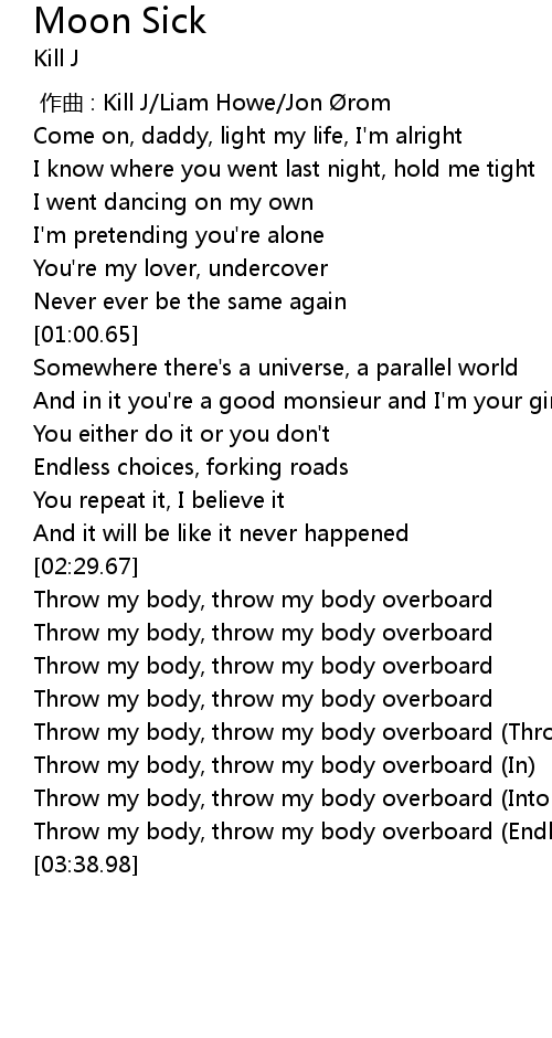 | [03:31.58] | Throw my body, throw my body overboard Endless possibilities |