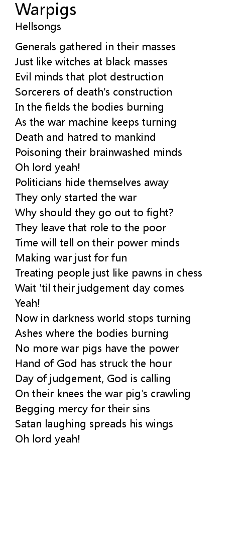 Warpigs 歌词