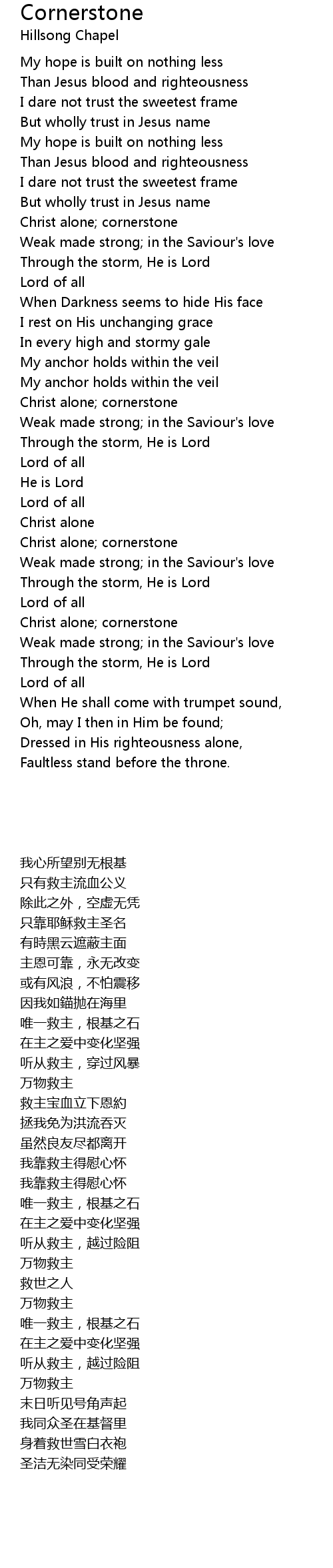 Christ alone; cornerstone |