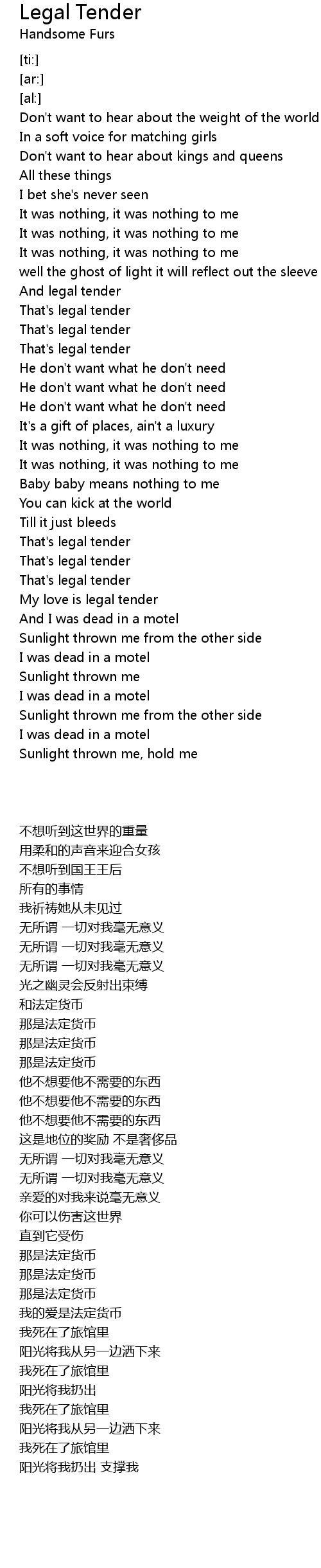 My love is legal tender |