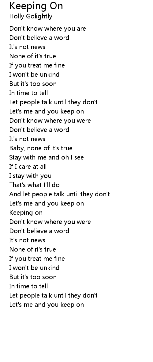 Keeping on |